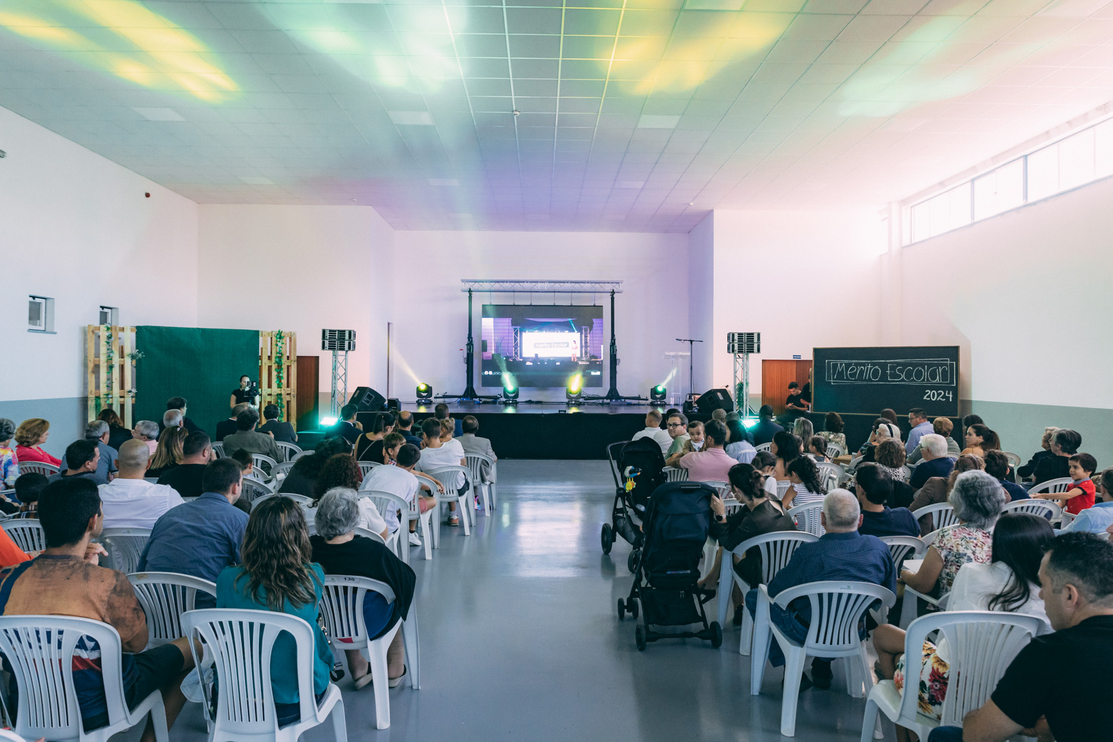 Registo fotográfico da Gala de Mérito Escolar 2024, celebrando o sucesso académico dos alunos da União das Freguesias de São Pedro de Alva e São Paio de Mondego. As fotografias capturam momentos de orgulho e emoção durante a entrega de prémios, destacando a dedicação dos estudantes e o apoio das suas famílias e comunidade.